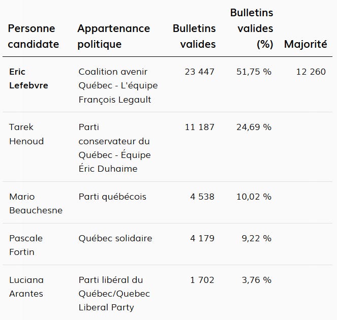 Difficile d’analyser ces résultats sans souligner la débâcle complète de la CAQ dans une circonscription qui lui avait pourtant été très favorable au cours de la dernière décennie. Le candidat caquiste, Keven Brasseur, a terminé loin derrière, en quatrième place, avec un maigre 7,2 % des voix. Nous sommes donc à des années-lumière de la victoire écrasante de l’ex-député caquiste Éric Lefebvre en 2022, lorsqu’il avait récolté près de 52 % des votes et devancé son plus proche adversaire par 27 points.