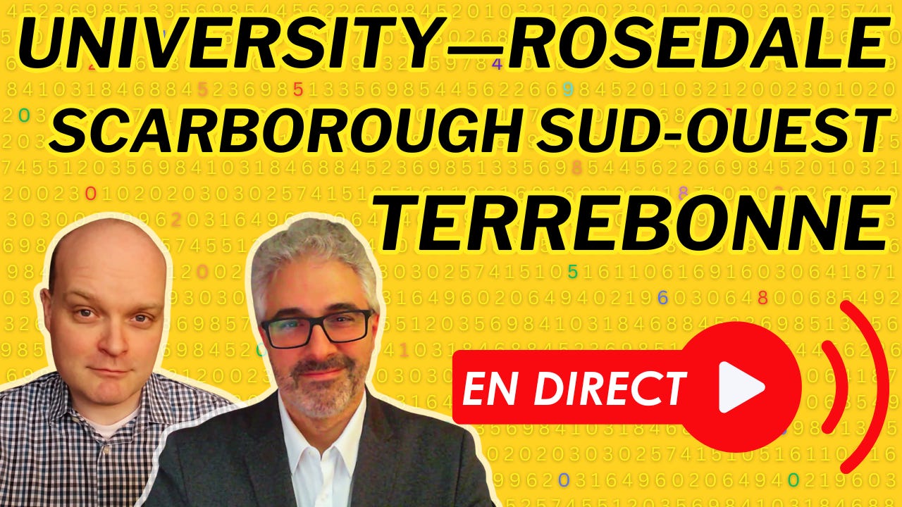 Mon partenaire du balado Les chiffres, Eric Grenier, et moi-même allons analyser et discuter des résultats lors d’une diffusion en direct sur YouTube.