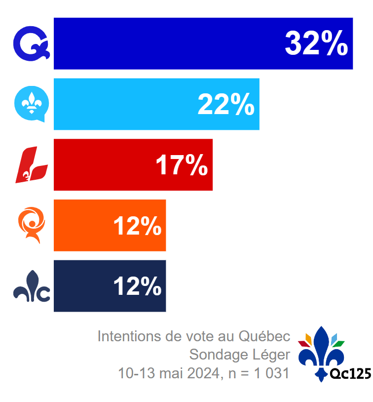 Nous ajoutons les données de ce sondage à la projection Qc125. Voici donc la mise à jour du 19 mai 2024.