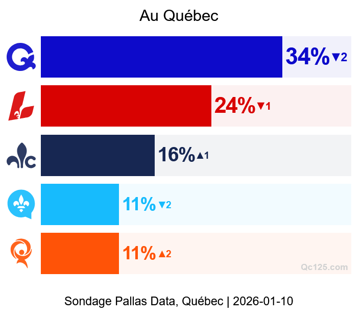 Les plus récents chiffres de Pallas Data dressent un constat sévère pour la CAQ. Voici la mise à jour Qc125.